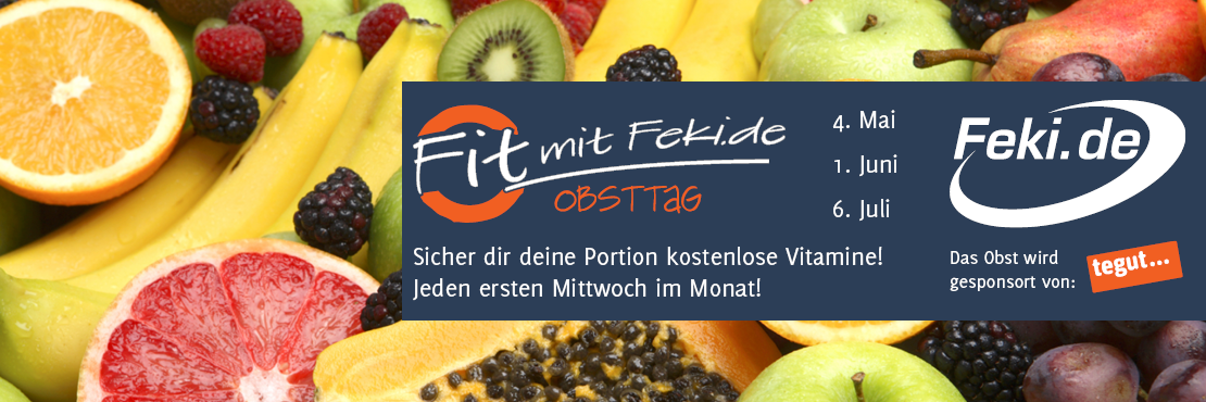 Nudeln mit Tomatensauce oder ein Döner zum Mitnehmen - das sind für viele die typischen Studierendengerichte. Aber um in der Uni gedanklich auf der Höhe zu bleiben, braucht man hin und wieder mal einen Vitaminschub - und hier kommt der Feki.de Obsttag ins Spiel.