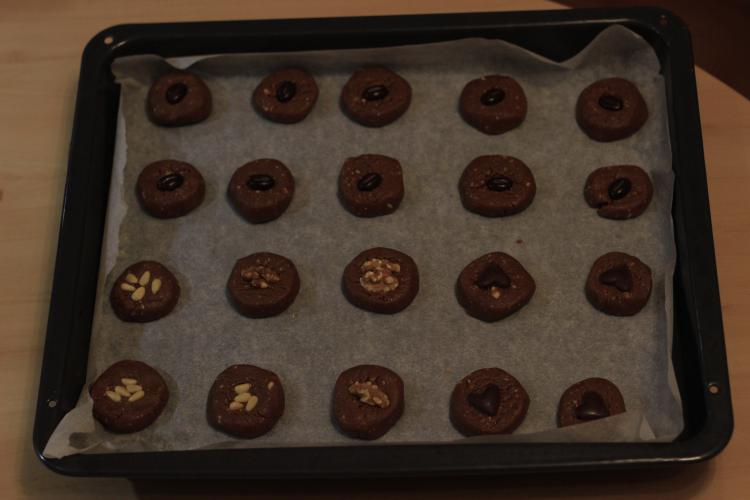 Espressotaler30 MinutenRührschüsselggf. PürierstabMesserSchneidebrettBackpapierBackblechGegen Müdigkeit in der Weihnachtszeit Espresso gibt es im Müsli, in Schokolade, warum nicht auch in Weihnachtsplätzchen? Wenn es draußen dunkel und kalt ist, kommt man bekanntlich besonders schwer auf dem Bett. Da kann es schonmal passieren, dass die Zeit morgens nicht mehr für einen Kaffee reicht. Umso besser, wenn man in der Vorweihnachtszeit auf Espressotaler zurückgreifen kann. Und nach den Weihnachtsferien wird es ja langsam aber sicher schon wieder ein bisschen früher hell. Aber natürlich könnt ihr die Taler auch ohne frühes Aufstehen genießen. Die Menge an Kakao- und Espressopulver lässt sich ganz nach eurem Geschmack variieren und auch bei der Wahl der Deko sind euch keine Grenzen gesetzt. Zubereitung: Butter, Zucker, Vanillezucker, Ei, Kakao und Espressopulver Schaumig rühren. Die gehackten Mandeln (selber hacken oder gleich gehackt kaufen) und das mit dem Backpulver vermischte Mehl unterkneten. Aus dem Teig Rollen kneten. Die Rollen in Taler schneiden und auf einem mit Backpapier ausgelegtem Blech verteilen. Die Taler je nach Belieben garnieren. Besonders passend sind Schokomokkabohnen, ihr könnt aber auch Walnüsse, Pinienkerne oder ähnliches nehmen. Wichtig ist nur, dass die Deko auch das Backen aushält. Die verzierten Plätzchen bei 180°C Umluft 15 Minuten backen. Mittwoch, Dezember 9, 2015Ann-Charlott StegbauerZutatenliste: 200 g Butter120 g Zucker1 Päckchen Vanillezucker2 EL lösliches Espressopulver2 TL Kakaopulver1 Ei100 g geh. Mandeln350 g Mehl1 Messerspitze BackpulverSchokomokkabohnen oder Nüsse zum GarnierenPortionen: 40