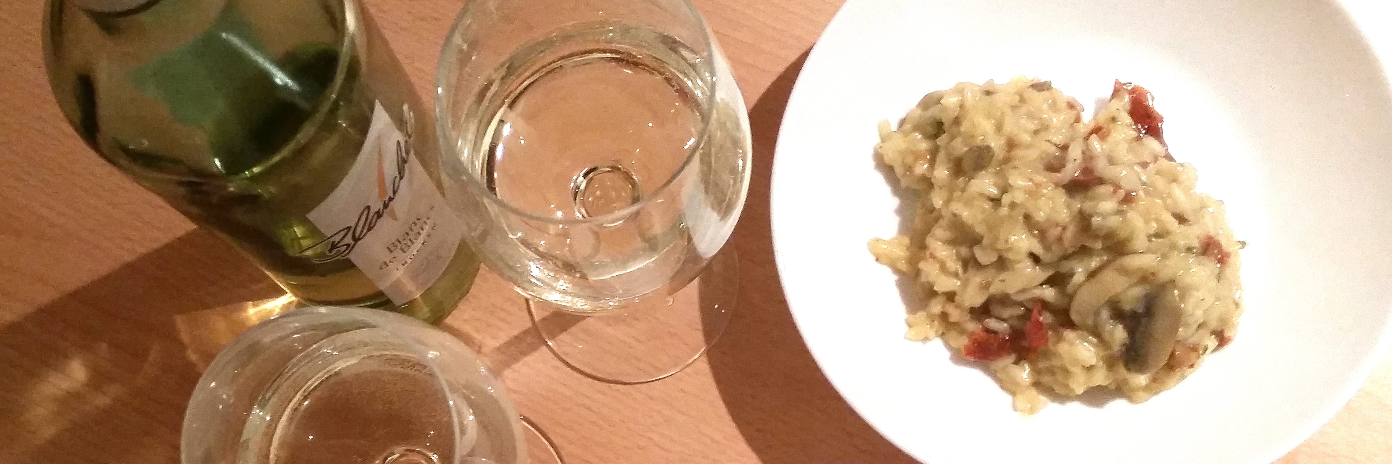 Das Risotto verteilen und dazu den restlichen Weißwein trinken. Guten Appetit!