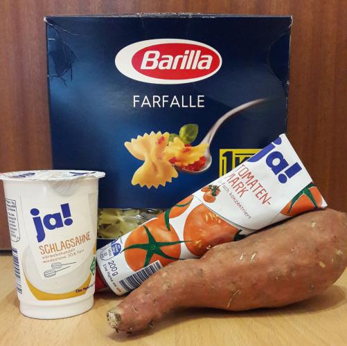 Süßkartoffelsahnesauce35 MinutenPfanneTopfMesserDauernd hört man, dass Leute Süßkartoffeln essen. Ich selber habe nie so recht gewusst, wie ich sie zubereiten kann. Nachdem wir zuhause bei meinen Eltern immer mal wieder Sahnesaucen mit ganz unterschiedlichem Gemüse gegessen haben, hatte ich dann die Idee, mal eine Süßkartoffelsahnesauce zu probieren. Et voilà: Fertig ist eines meiner mittlerweile Lieblingsgerichte! Zubereitung: Zuerst schälst du die Süßkartoffeln und schneidest sie in kleine Würfel. Die Süßkartoffelwürfel werden dann in einer beschichteten Pfanne mit etwas Öl angebraten und schon mal mit etwas Salz und Pfeffer gewürzt. Sobald sie ihre Farbe verändern und ein bisschen weicher werden, kommt etwa die Hälfte der Sahne und etwa 1 EL Tomatenmark dazu. Das Ganze verrührst du gut und lässt die Sahne aufkochen. Der Herd kann jetzt ein bisschen zurückgeschaltet und das Nudelwasser aufgesetzt werden. Während die Nudeln kochen, die Sauce immer wieder umrühren, die restliche Sahne unterrühren und mit Salz, Pfeffer, Kurkuma, Tomatensalz und süßem Paprikagewürz abschmecken. Je nachdem, wie du die Konsistenz magst, kannst du noch etwas Wasser hinzugeben und wenn nötig nachwürzen. Wenn die Nudeln fertig sind, gießt du sie ab und servierst sie mit der Sauce. Lass es dir schmecken! :) Montag, Oktober 29, 2018Jasmin WahlZutatenliste: je nach Größe 1-2 Süßkartoffeln1 Becher Sahne1 EL TomatenmarkSalz, Pfeffer, Kurkuma, Tomatensalz, Paprikagewürz250g NudelnÖl zum AnbratenPortionen: 2