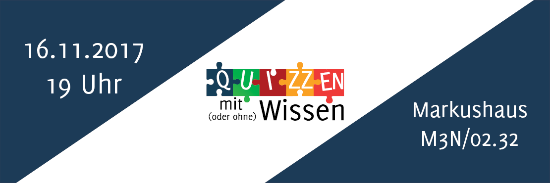 Nach dem Erfolg und Spaß aus dem letzten Semester organisieren wir für euch zum zweiten Mal die Uni-Quizshow Quizzen mit (oder ohne) Wissen.  Wir haben neue Fragen, eine neue Örtlichkeit und ein abgewandeltes und verbessertes Konzept im Gepäck. Moderiert wird das Quiz – wie auch im letzten Semester – von Daniela Jeong und Anna Gruhle.