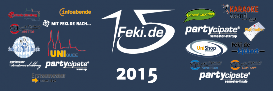 2015 haben wir den 15. Geburtstag von Feki.de gefeiert. Doch das ist bei weitem nicht alles, was wir in den letzten zwölf Monaten mit euch erlebt haben. Sport, Partys, Fahrten, nützliche Infos und viele Möglichkeiten, Spaß zu haben und neue Kontakte zu knüpfen… Bevor wir uns in den Semesterendspurt stürzen, möchten wir mit euch auf das vergangene Jahr zurückblicken und uns für eure Teilnahme und euer Interesse bedanken.